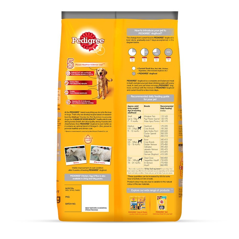 Pedigree, made with prime quality substances, gives the canine with Min Protein 22%, Min Fats 10% & Max Fiber 5%.