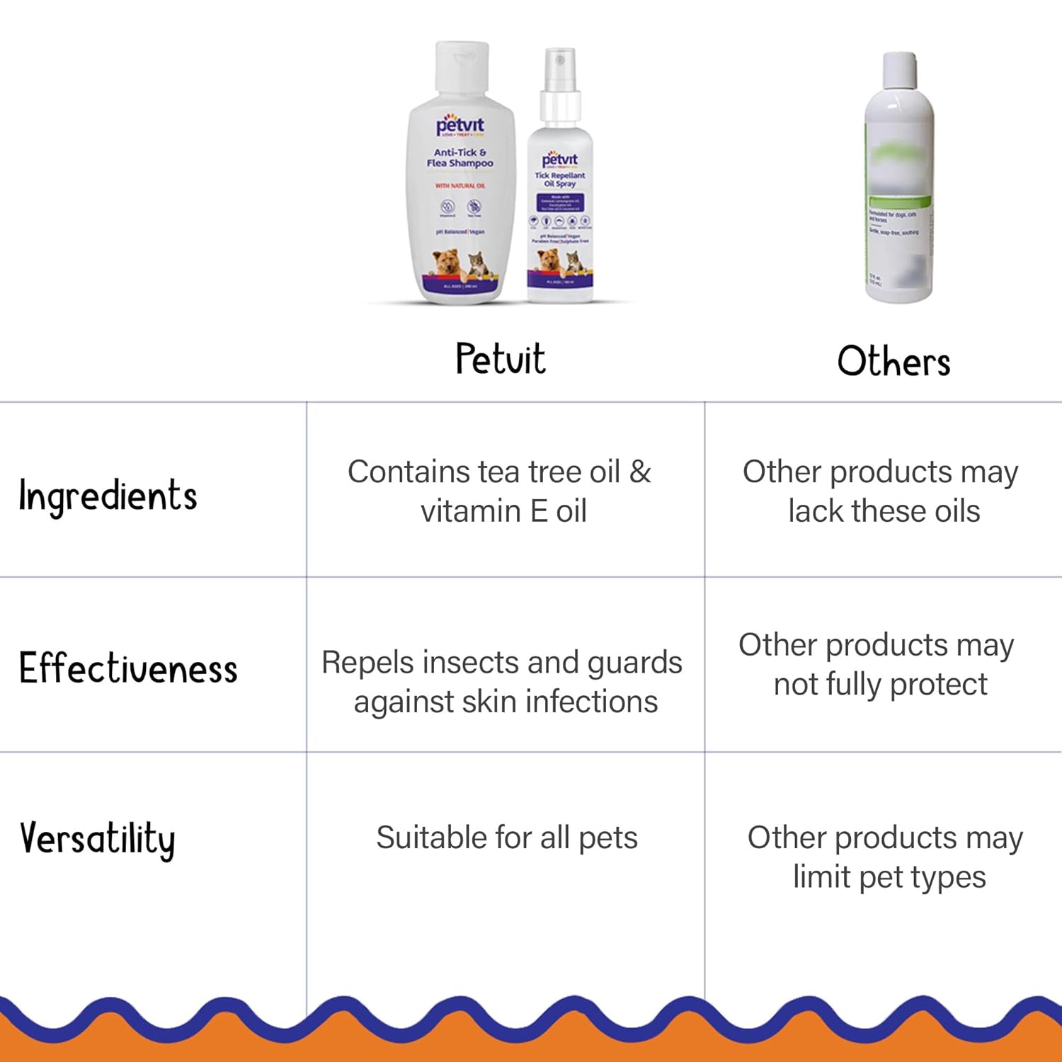 PetVit Anti Tick Dog Shampoo and tick Spray for Dogs Combo | Best Dog Shampoo for Ticks and Fleas | Tick Remover for Dogs | Tea Tree Oil | Lemon Grass Oil | Non Toxic | 200 ml + 100 ml