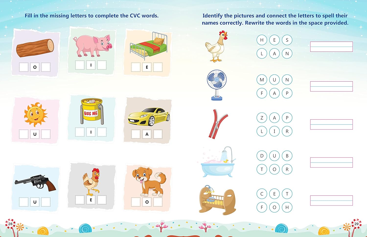 Studying phonics improves studying and writing expertise and helps to differentiate between the sounds letters make in a language. This guide teaches youngsters blends, the place a number of letter sounds mix, and every sound is heard, like blue and star and digraphs, the place two letter sounds kind one sound, like chef and sing. As youngsters learn a number of examples and work out thrilling workout routines on blends and digraphs, they may improve their vocabulary and grow to be environment friendly communicators.