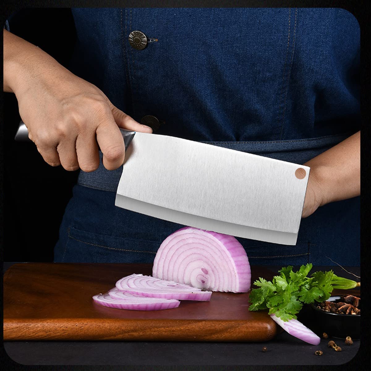 🌸 𝐏𝐀𝐂𝐊𝐀𝐆𝐄 𝐈𝐍𝐂𝐋𝐔𝐃𝐄 : 1PCS x Paring Knife (5Inch Blade,Weight Approx 80G), 1PCS x Chef’s Knife (7Inch Blade,Weight Approx 120G) and 1PCS x Meat Cleaver (7.5Inch Blade,Weight Approx 140G).