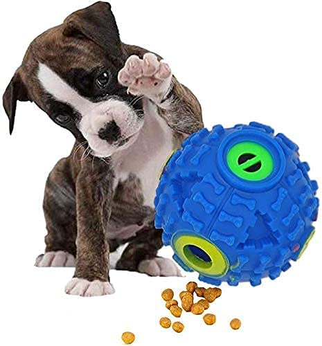 Pups&Pets Squeaky Dog Toy Ball Feeding Food Dental Cleaning Training/Playing Interactive Tooth Care Treat IQ Zone (Large, Multicolor)