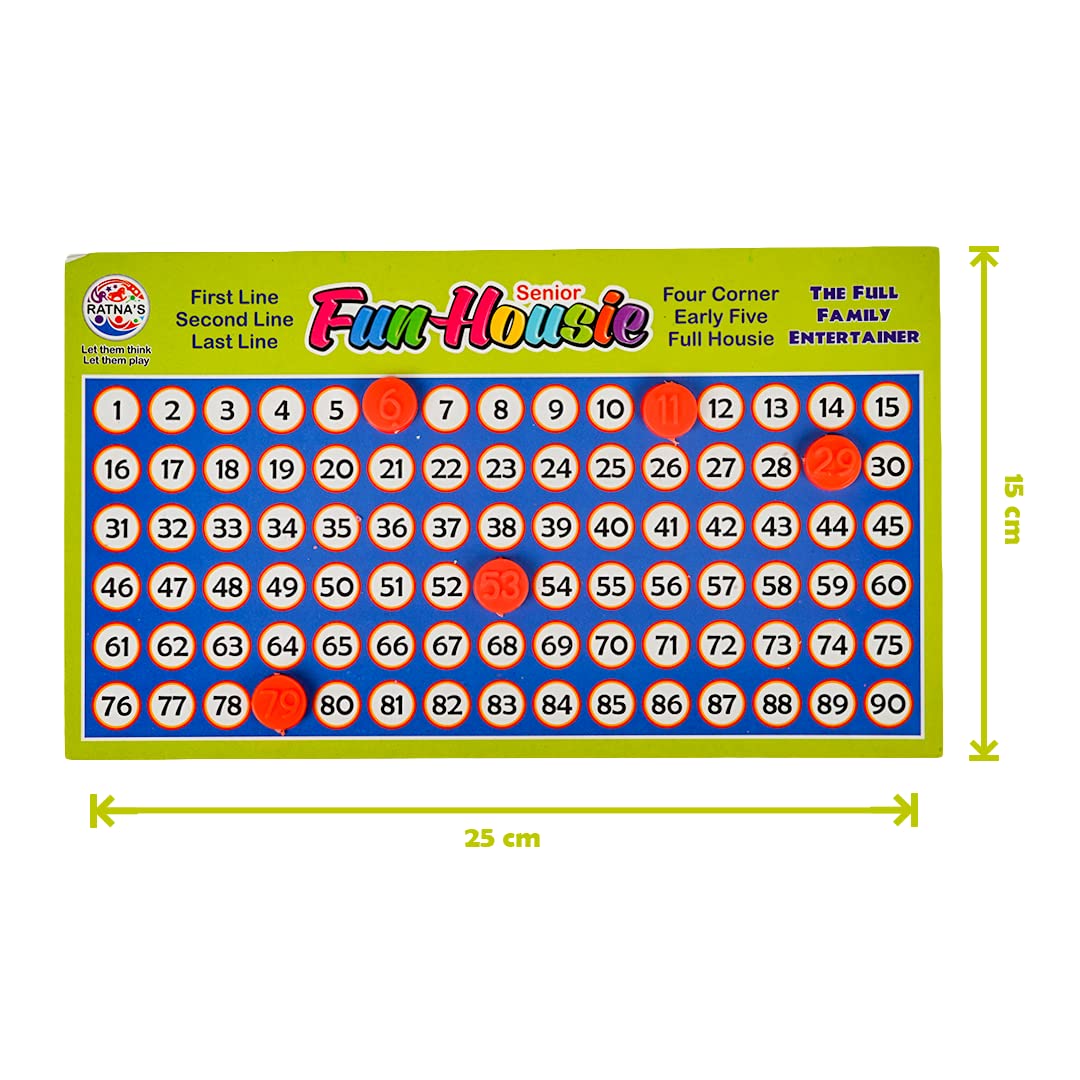 Ratna’s Plastic Family Game Fun Housie Small with 120 Tickets Board Game, Multicolour, Fixing Checking Board, 90 Coins, and Tickets