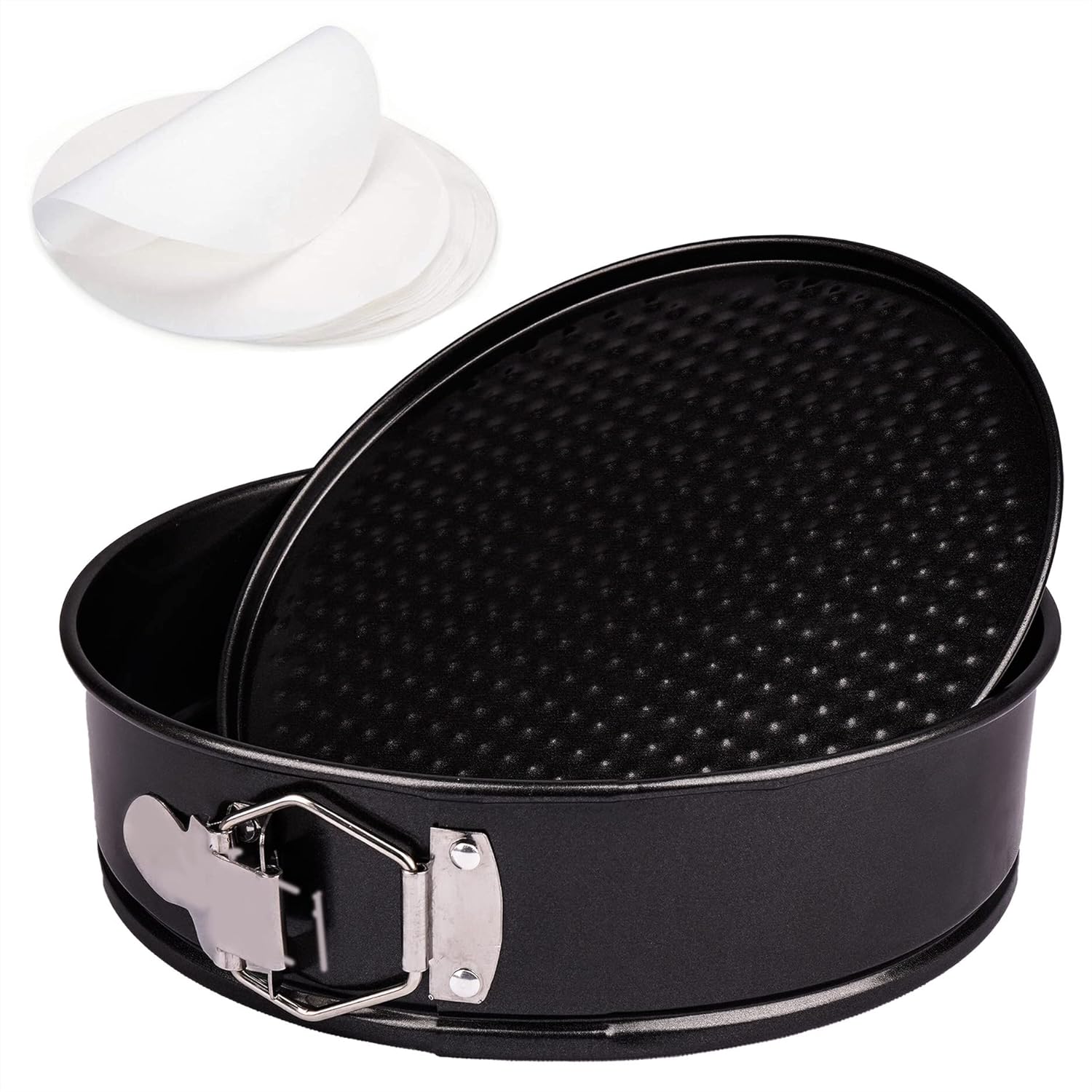 RFAQK Ultimate 8-inch Springform Cake Pan Set with Removable Bottom- Leakproof Non-stick Round Baking Pan with 50Pcs Parchment Papers Perfect for Cheesecakes, Sponge Cakes & More- Bonus E-Book!