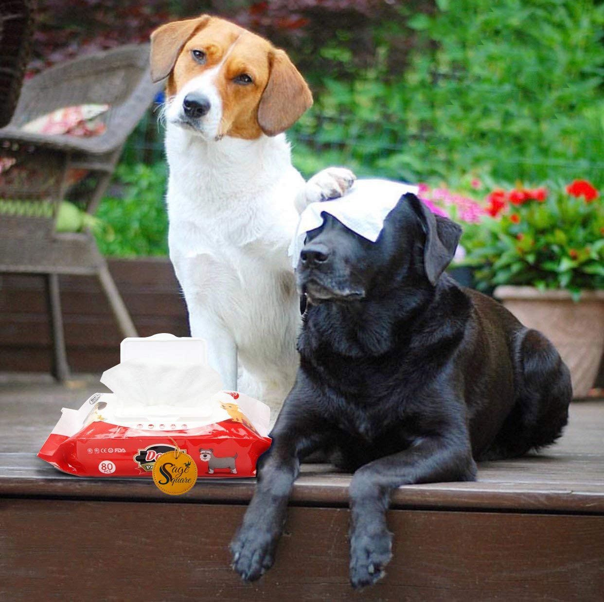 Sage Square Alcohol-Free All Natural Deodorizing Pet Cleaning Dog/Cat’s Ears Eyes Paws Antibacterial Wipes (80 Pieces)