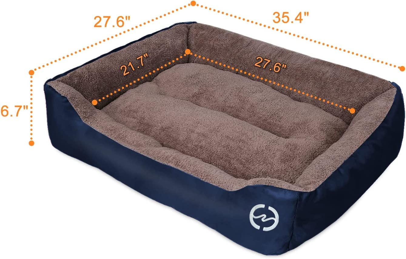 SITSNOOZE Dog Bed and Cat Bed, Extra Soft Washable, Pet Beds Rectangle Shape, Anti-Slip and Water Resistant Bottom, for Comfortable Sleeping of Your Pet (Brown and Blue -XXL)