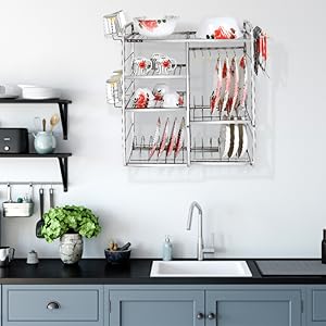 On account of its engineered construction and inflexible materials the rack may be mounted on partitions. The construction can endure heavy load with ease. It’s robust sufficient to carry all your plates, bowls, cups and different kitchen utensils.