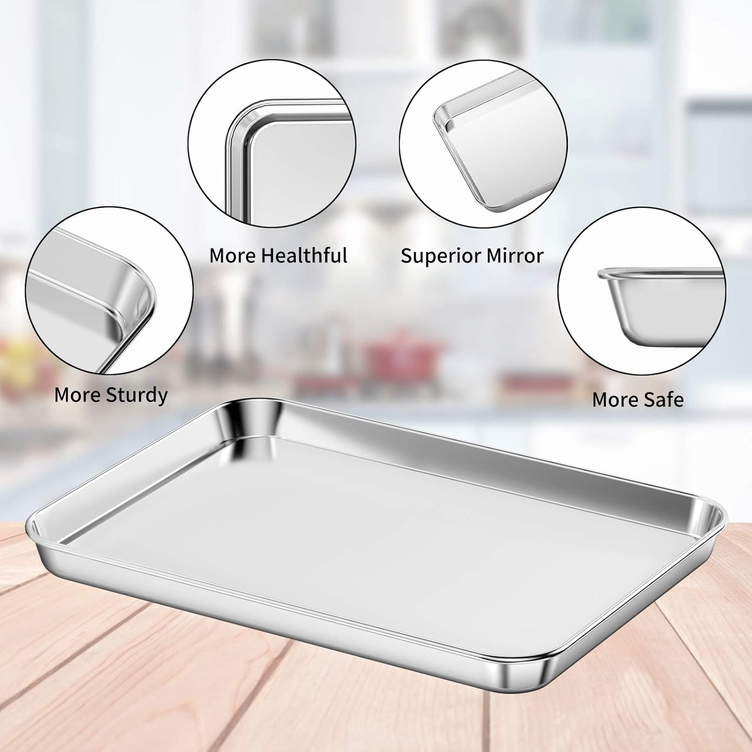 【MORE STURDY】HOHUNGF small chrome steel cookie sheets is sturdy and glossy, thick gauge 18/0 chrome steel materials with heavy obligation design, doesn’t warp and is dishwasher secure.Rust resistant and sturdy for a few years.