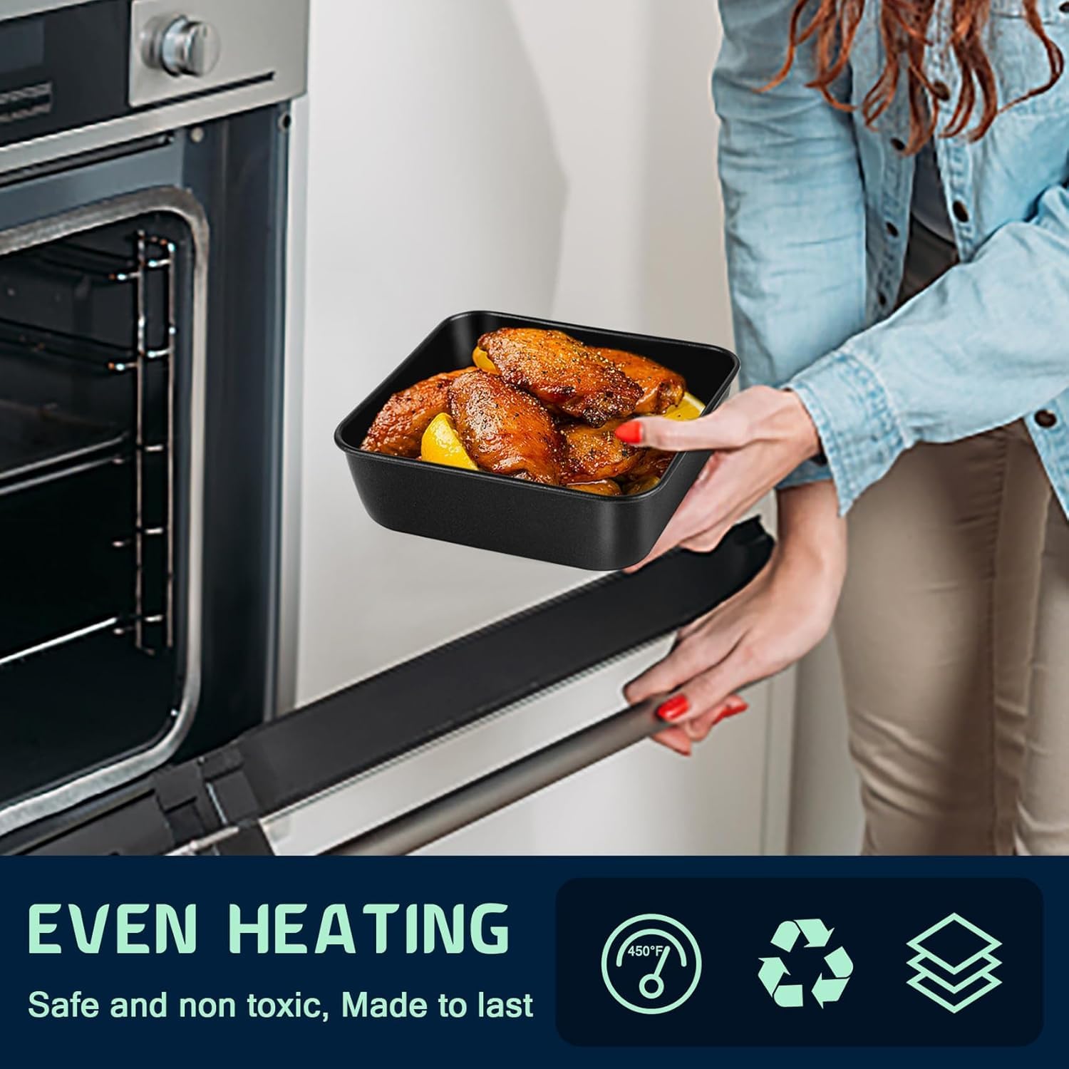 Square Cake Pan, Nonstick Small Baking Pan with Stainless Steel Core for Brownies Lasagna Cakes Cheese Cake Bakeware Baking Tin Square Cake Mould Roasting Tray Oven Cupcake Tray Meat Loaf