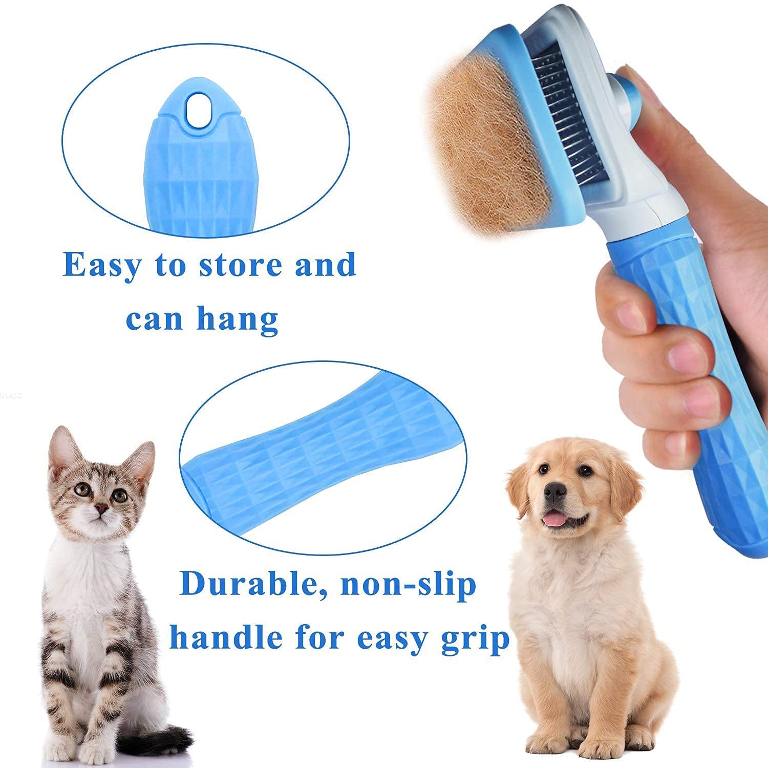 Canine Grooming Brushesx1 (blue) + Bathing BrushSize: 7.4″ x 4.1″ ( size x width )brush pin size: 0.4″ deal with size: 5.2″Execs: Relating to this canine brush, it has therapeutic massage particles that may higher promote the blood circulation of pets. With the clicking of a button, after which retracting the mane, it is vitally straightforward to take away all hair from the comb and clear