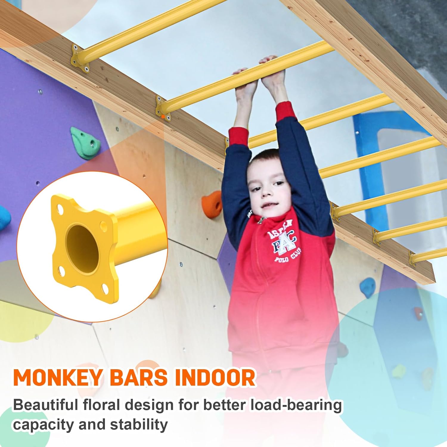 【Lengthy Time period Use】Indoor monkey bars are coated with yellow powder coating, not simple to rust, simple and fast to put in, indoor and outside can be utilized.