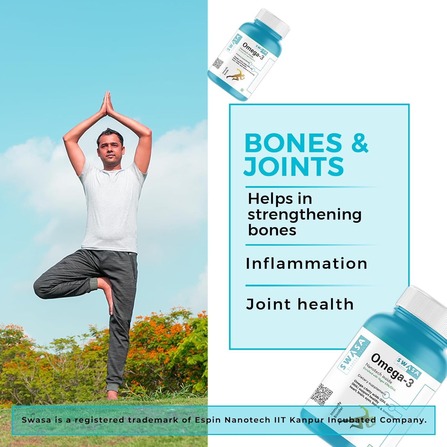 Swasa Haleup Vegan Omega 3 Capsules, 500 mg || Nanotech Inside II Enriched with EPA/DHA || Healthy Heart|| Brain|| Immunity ((Pack of 2))