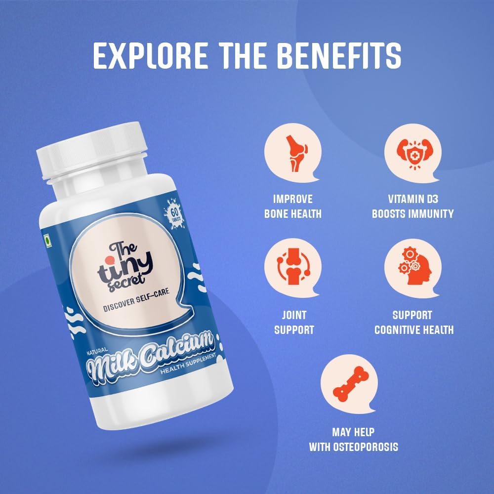 Optimum Bone, Enamel, and Gum Help: The Tiny Secret Pure Milk Calcium Tablets present the day by day necessities of calcium and important minerals like vitamin D3, that are vital to take care of the construction of bones, tooth, and gums.