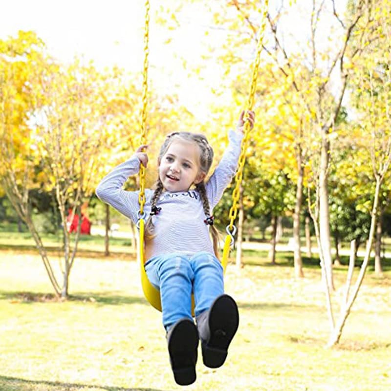 Toy Park Kids Flexible Swing Seat Heavy Duty 60″ Chain Plastic Coated – Playground Swing Set Accessories and Snap Hooks -Pack of 4 (Yellow)