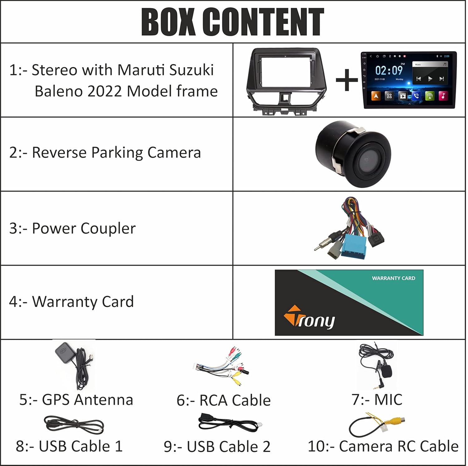 Trony is a extremely trusted model that manufacture and ship top quality product. Trony Superior Automotive Radio Receiver Android for Maruti Suzuki Baleno 2022 Comes with 9″ Inches contact display screen panel . It comes with the most recent Superior Android 10 working system which has new improve function than the earlier model. It has the Digital Storage capability of 32GB . It comes with decision of 1080p Full HD Show which improve the consumer expertise whereas driving. It comes with the Tuner Expertise of FM/AM. It will probably endure the ability wattage of 200W which makes it extra electrically versatile amongst different common product. The System is Wi-Fi enabled. System may be related via modes like Bluetooth, USB, Wi-fi and Auxillairy. It comes with the Mounting {Hardware} of 1 System and Wiring. The System is GPS enabled. It comes with the Speaker connectivity, Person can join the system with the speaker for wonderful sound expertise which improve its high quality. The System comes with the Coupler to Coupler fitment, consumer can join the Automotive wire with System wire with none reducing which will increase the sturdiness of the product in addition to doesn’t alter the Authentic Automotive Guarantee and Assure. The Holder of the Coupler made up of Top quality plastic which makes it electrical resistent and shock free which provides consumer a secure expertise whereas performing the operation. The system doesn’t require batteries.