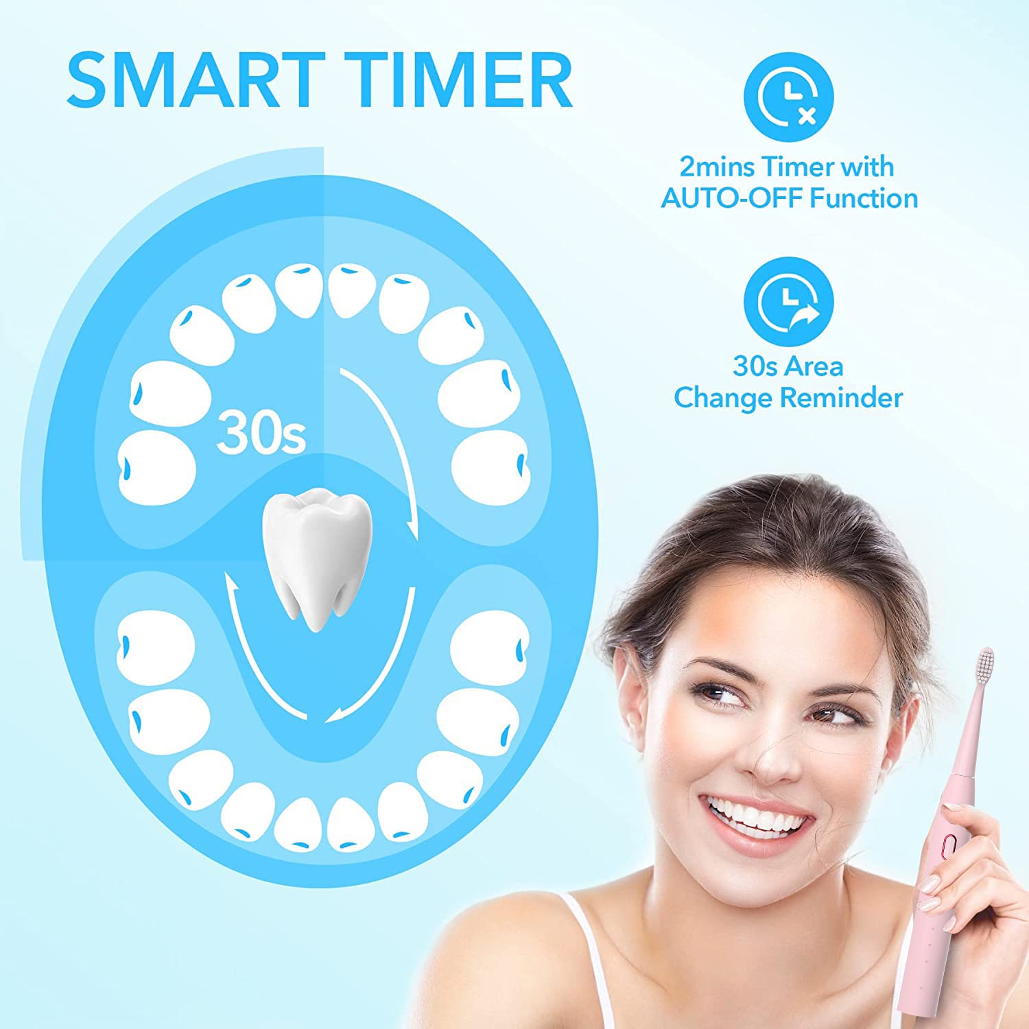 Sensible Timer& Reminiscence : Reminds to maneuver to subsequent brushing space after each 30 sec I 2 min auto shut-off, Remembers final used mode & begins at that mode in subsequent use
