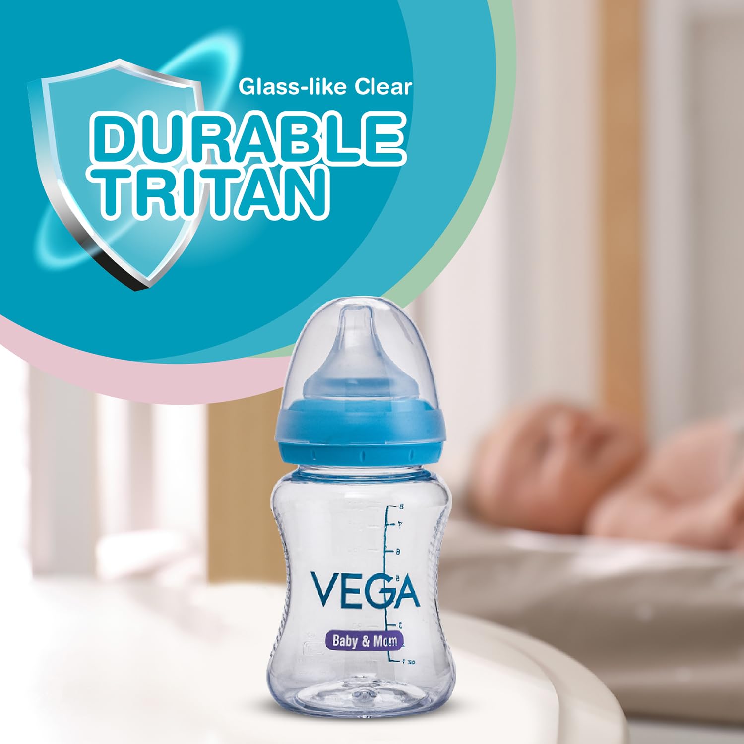 Vega Child & Mother Tritan Feeding Bottle 250ml Huge Neck – Blue | Product of Sturdy Tritan | BPA/BPS Free | Shatter Proof | Appropriate for 4+ Month Infants, (VBFB4-04)