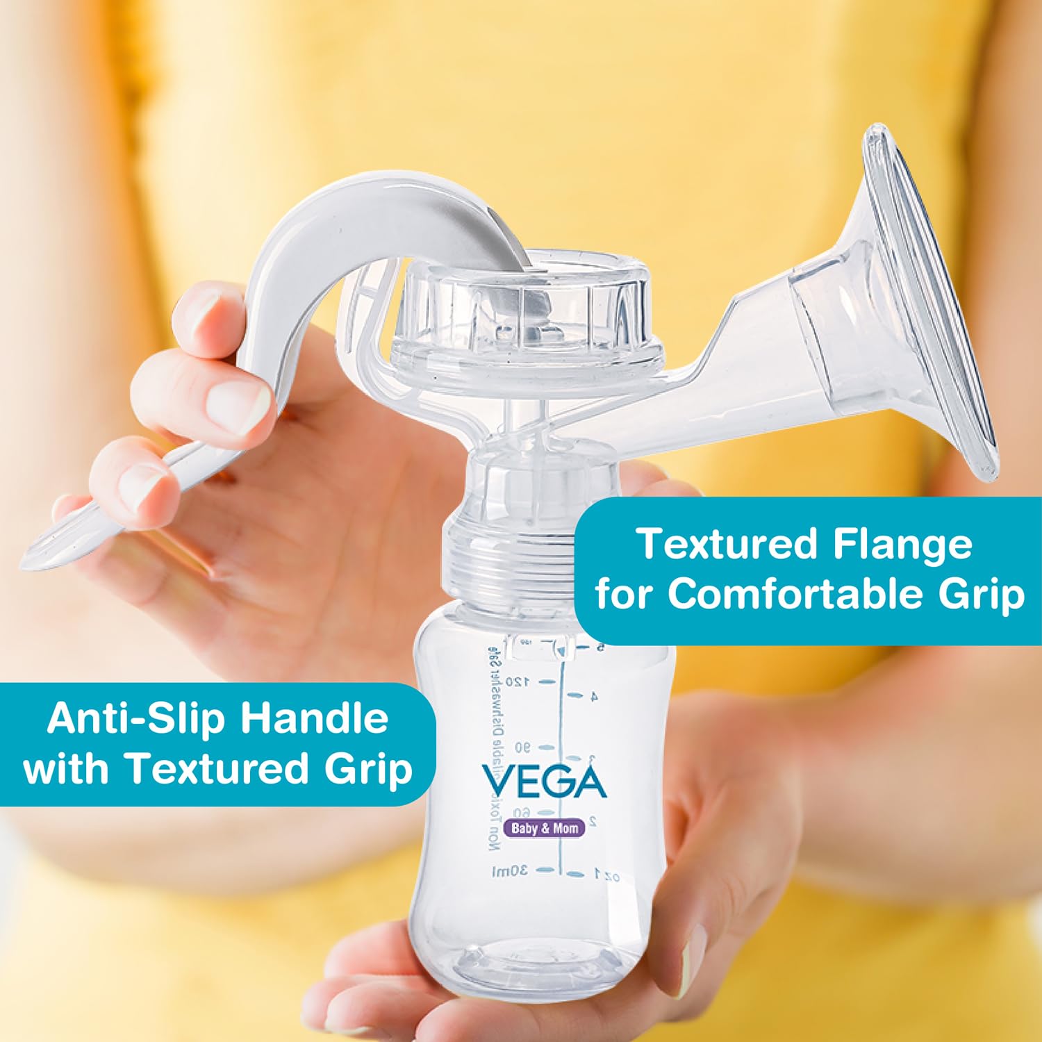 Vega Child & Mother Handbook Breast Pump Fundamental|BPA Free | Silicone Valve|No Milk Again Move | Textured Flange for Comfy Grip | Light & Efficient Expression of Breast Milk, (VBBF3-01)