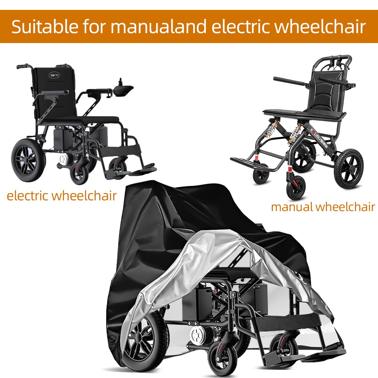 Wheelchair Cover,Electric Wheelchair Cover,Wheelchair Cover for Storage,Heavy Duty Waterproof&Dustproof Cover for wheelchair,Mobility Scooter,Prevent Rain Wind Dust Sun Uv, for indoor and outdoor