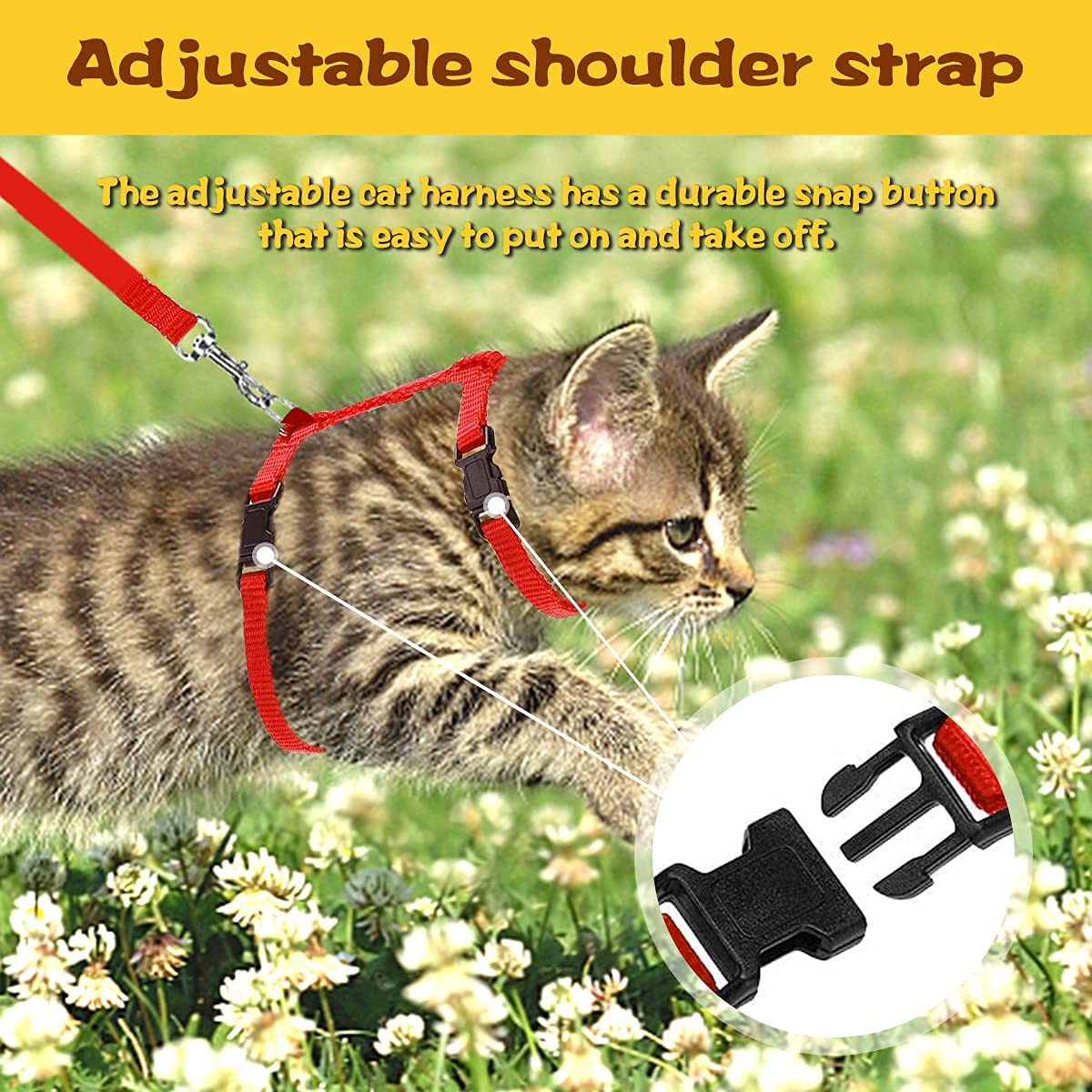 Straightforward To Use-The Adjustable Cat Harness Has A Sturdy Snap Lock That Is Straightforward To Put On And Take Off.