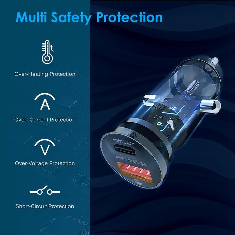 Security and Reliability Redefined: Prioritizing your security, our automobile charger carries certifications from RoHS, CE & FCC. Protect your gadgets from overheating, over-currents, overcharging, and brief circuits. Charging halts mechanically upon battery fullness, making certain worry-free charging