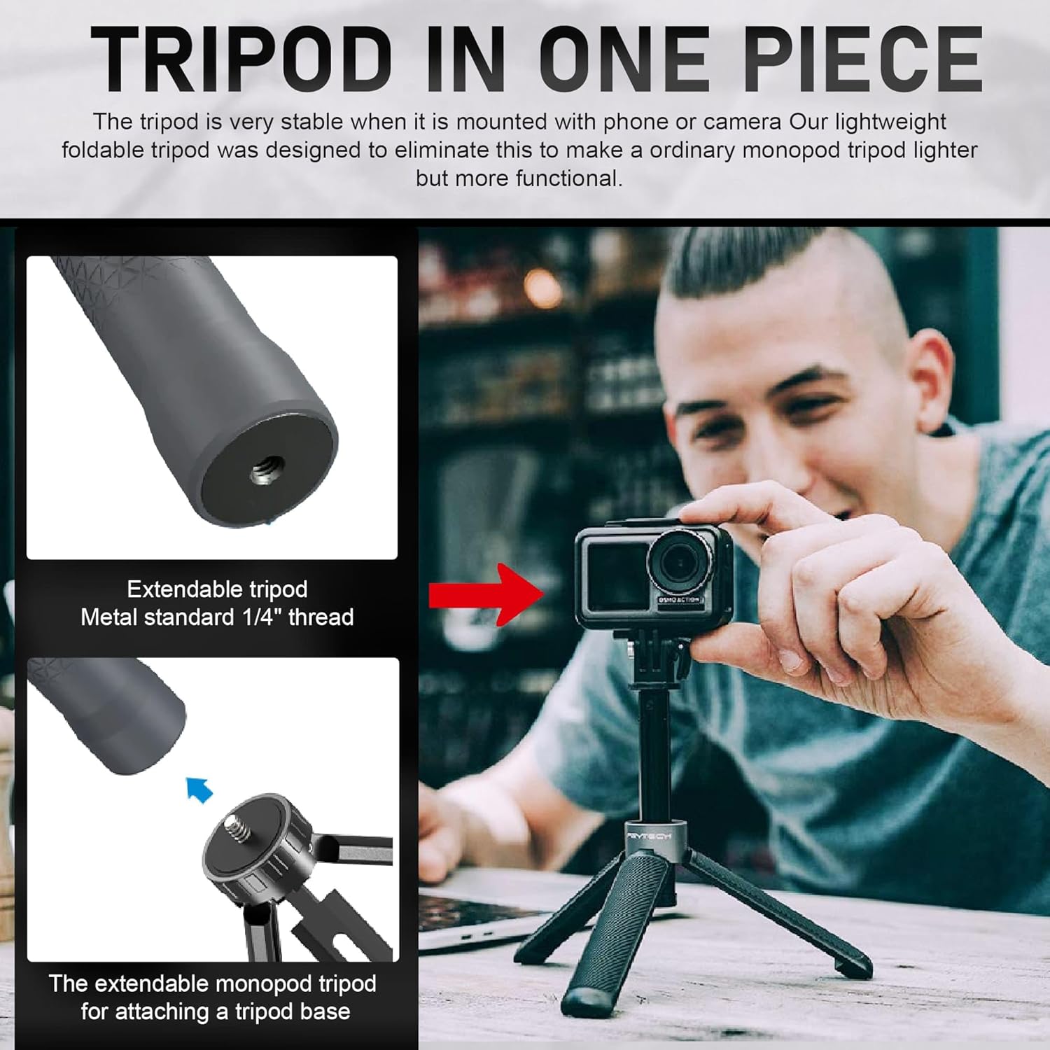 Sturdy and Sturdy Development: Crafted from high-quality supplies, this monopod tripod is designed for superior power and stability. Its waterproof building makes it appropriate for each indoor and out of doors use, offering a dependable mount in any atmosphere.
