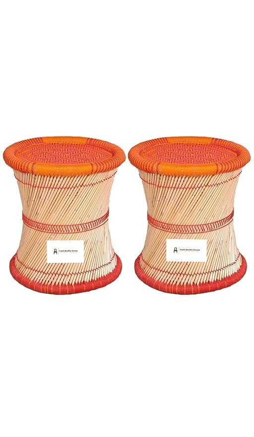 YASH MUDDA HOUSE Ecofriendly Handicraft Cane Bar Stool Mudda Chair for Indoor/Outdoor Furnishings Multicolor, Bamboo 15 * 15″ (Pack of 2)