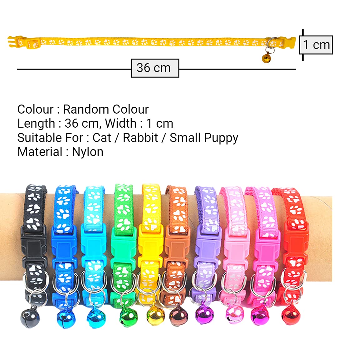 YOUSTYLO – YOU ARE PRIORITY Cat Collar Belt for Kitten with Bell Paw Print Nylon Made Adjustable Size Pet Safe Collars for Cats Rabbit (Random Color, Pack of 2)