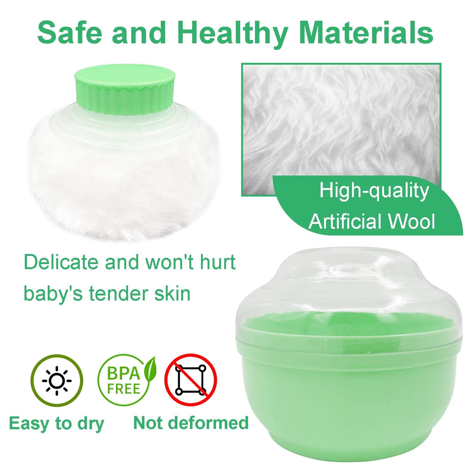 Zaples BPA Free Baby Powder Puff Box, Large 2.8″ Fluffy Body After-bath Powder Case, Baby Care Face/Body Villus Powder Puff Container, Makeup Cosmetic Talcum Powder Container with Hand Holder (Greenn)